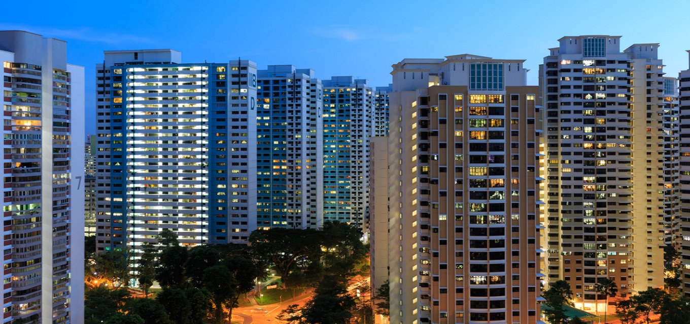 Singapore-05 MAY 2018: Singapore high density HDB residential building night view